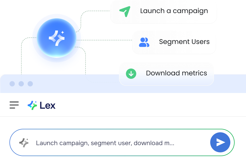 Want to launch a campaign? Segment users? Download metrics? Just ask. Lex gets it done.