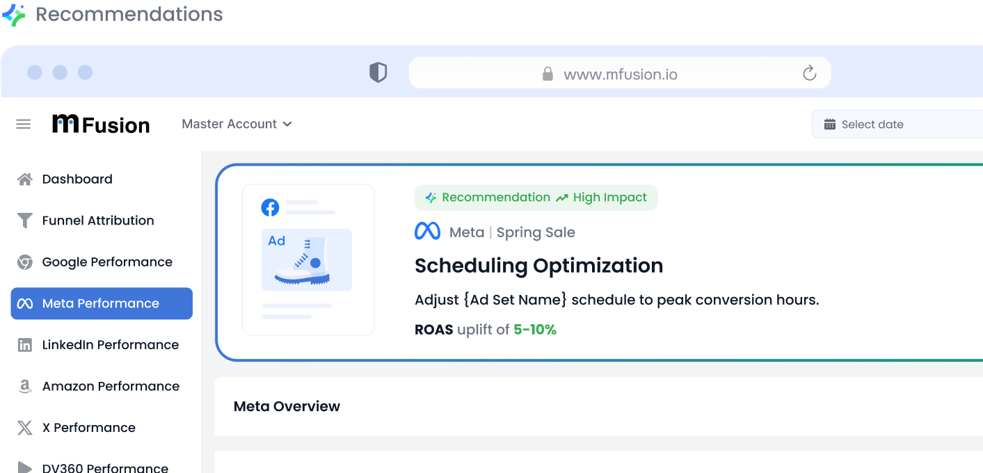 Spot underperforming ads, reallocate budget, tweak creatives: Lex gives you clear suggestions backed by real-time data.
